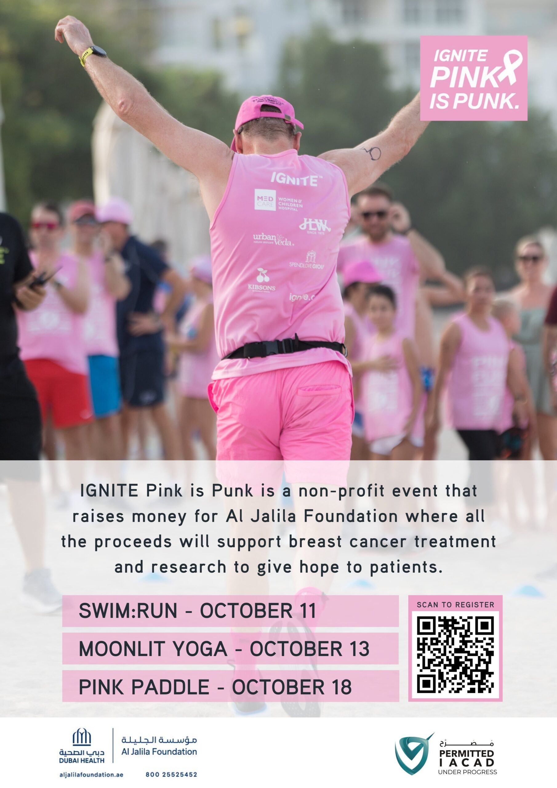 Our 2024 campaign was a powerful reminder of what community can achieve. With over AED 123,000 raised across three incredible events, 100% of the proceeds went directly to the Al Jalila Foundation to support breast cancer patients and fund life-saving research. We’re incredibly grateful to everyone who took part from the 900+ participants to our amazing partners, especially our Title Sponsor: Medcare Women & Children Hospital, and key supporters including: Keen PR, Anantara The Palm, RIVA Beach Club, JLW, Kibsons, Spendlove Group, Urban Veda, VITALICE, Maxi Nutrition, Costa, Pret, Mr. Toad’s, and all our activation partners. And now… we’re back for 2025 and we’d love to have you involved! Find out more and get involved! Together, we’re making a meaningful difference. Let’s do it again.